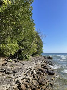 Schoolhouse Beach. This lovely lakeshore beach has no sand but rather smooth limestone rocks that